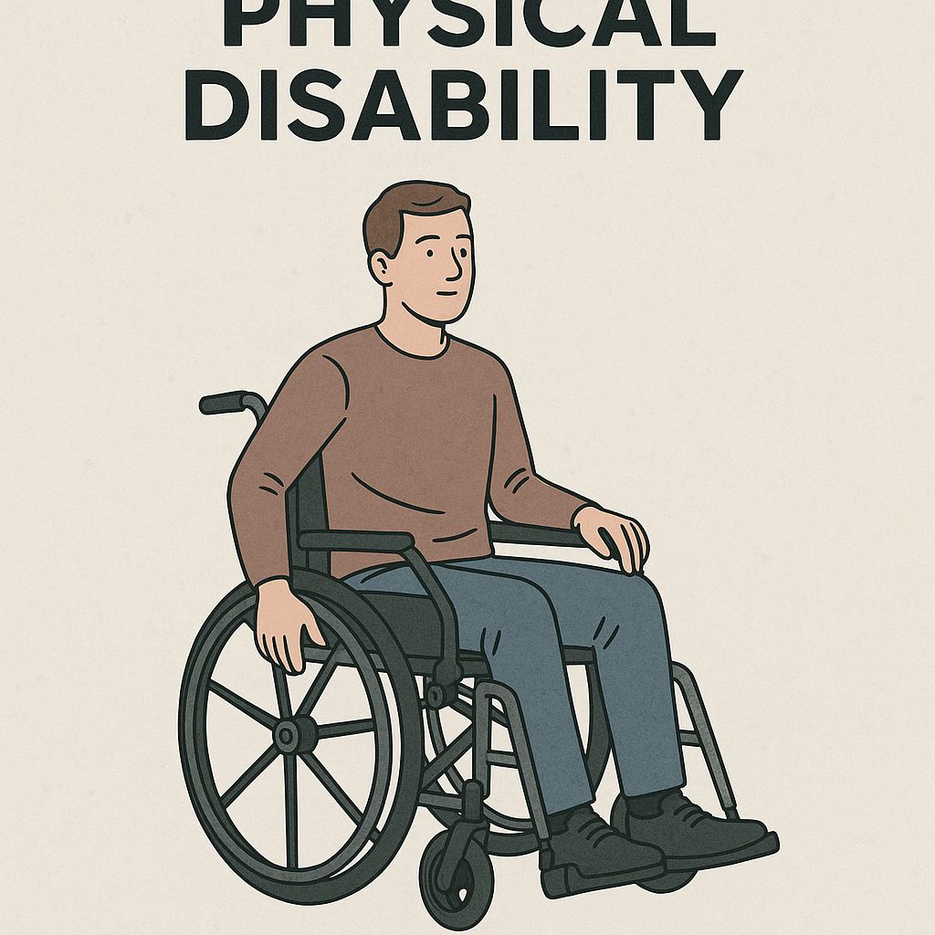Physical disability refers to a condition that limits a person’s physical functioning, mobility, dexterity, or stamina. It can be caused by congenital (from birth), acquired (due to accident or illness), or degenerative conditions.