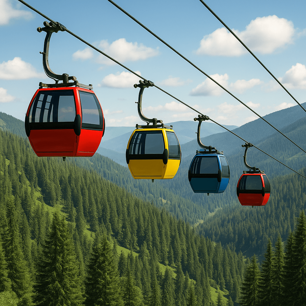 Ropeways (also known as cable cars or aerial tramways) are transportation systems where passenger or cargo cabins are suspended and moved using cables. They’re commonly used in hilly or mountainous regions and for short-distance urban transport. Here’s an overview: