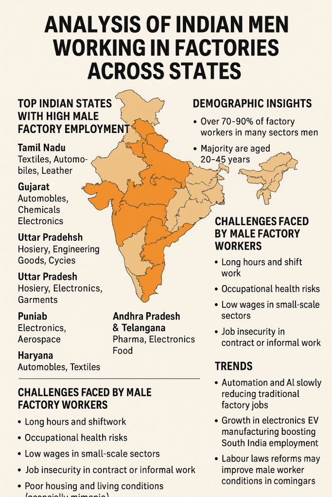Here’s an analysis of Indian men working in factories across various Indian states based on available labour and industry trends: