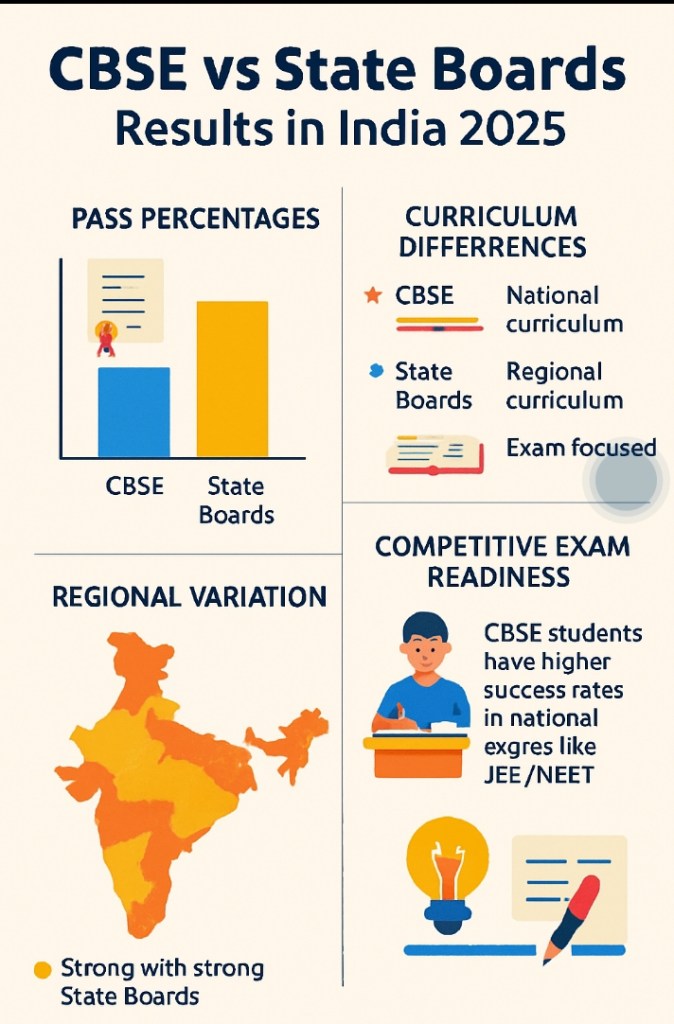 Analysis: Indian Students’ Results – CBSE vs State Boards (2025)Pass Percentages & Academic Outcomes