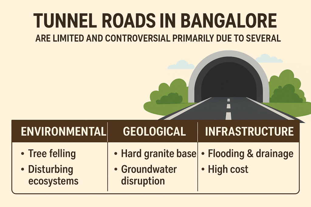 The debate around tunnel roads in Bangalore (Bengaluru) is less about climate change alone and more about a mix of environmental, geological, and infrastructure-related concerns. Here are the main reasons they are limited and controversial: