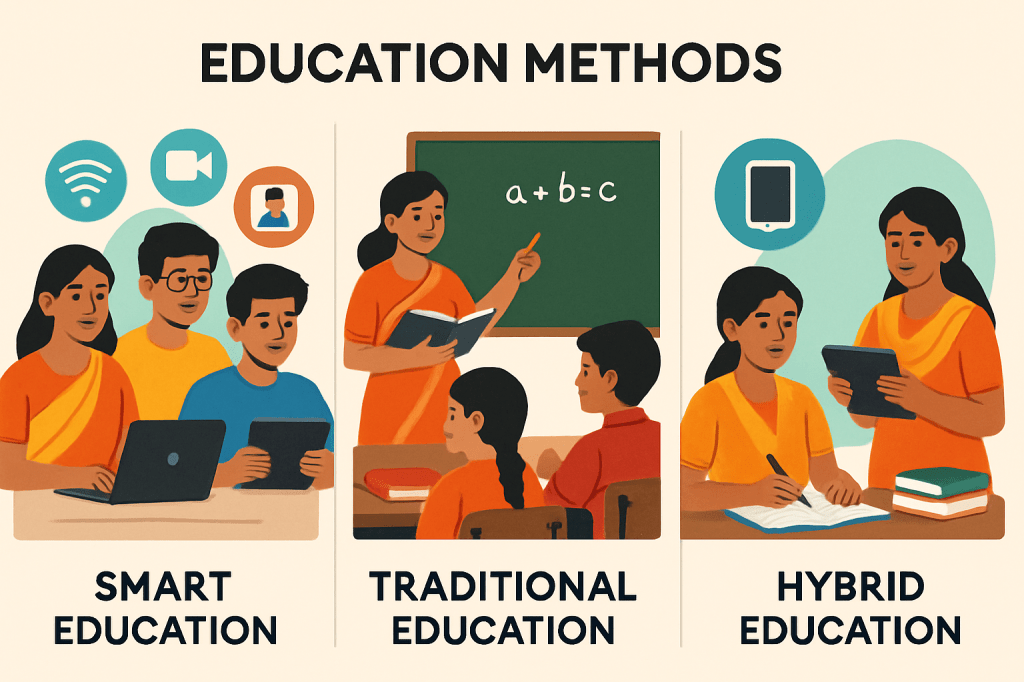India is in a transition phase: the majority of students still experience traditional education, but smart and hybrid models are expanding quickly, particularly in urban and private settings, with government interventions projected to accelerate this change.