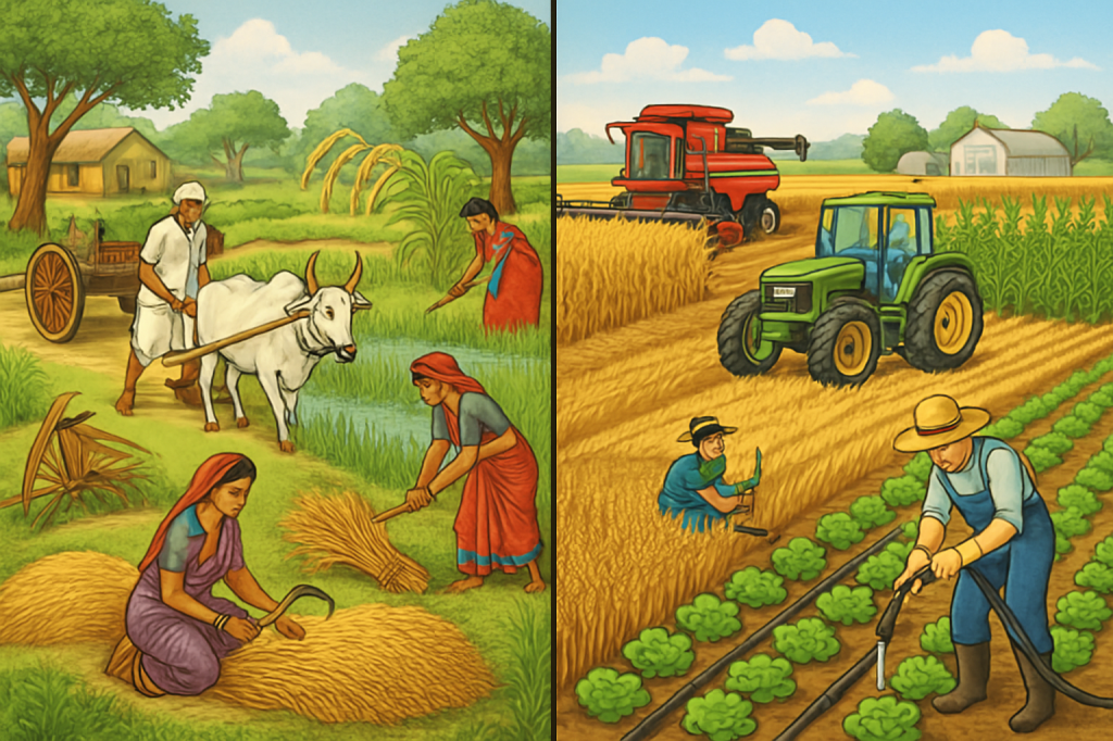 Most Indian farmers still largely rely on traditional farming practices, although the adoption of modern, technology-driven farming is steadily increasing in recent years, driven by government schemes and market forces.
