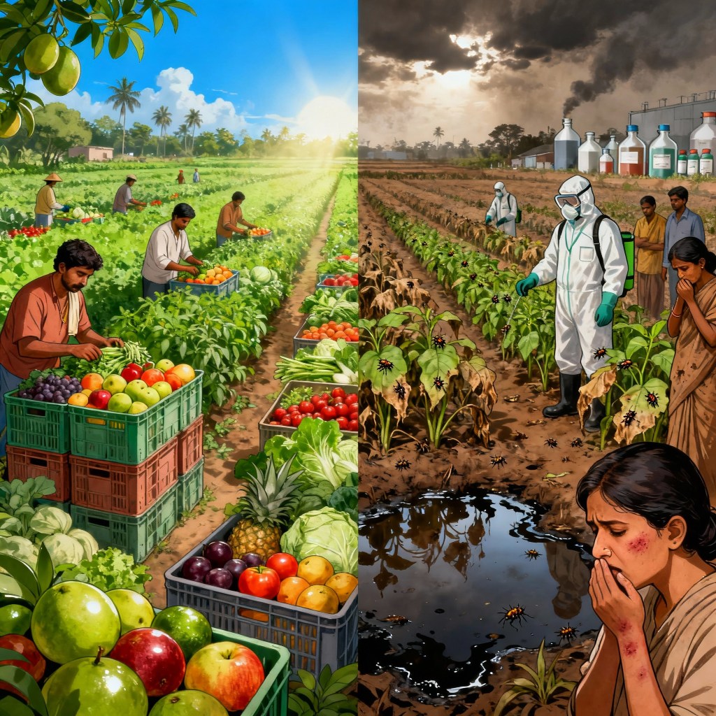 SummaryIndia’s booming fruit and vegetable export sector reflects global demand for its produce, but the widespread chemical dependency in conventional farming poses health and ecological threats. The country is now witnessing a decisive shift toward sustainable, organic, and eco-friendly agriculture, balancing export growth with public health and environmental safety.
