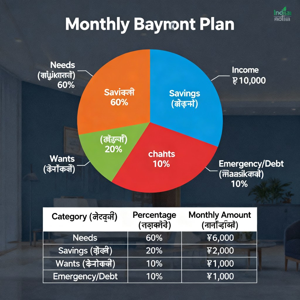 Here’s a simple and practical monthly budget plan tailored for an Indian household with an income of ₹10,000 or more. The structure follows a modified 50-30-20 approach adjusted for low-income flexibility, inspired by recommended strategies from Indian financial experts ���