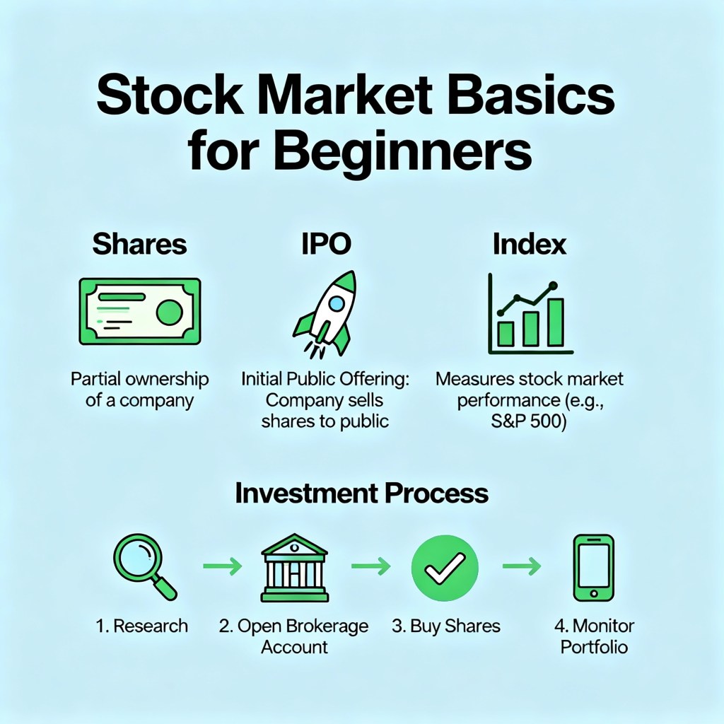 In summary, the stock market connects companies needing funds with investors looking to grow their money by buying shares. With basic knowledge of shares, IPOs, indexes, and investing methods, beginners can start participating in the stock market with the right accounts and research �����.