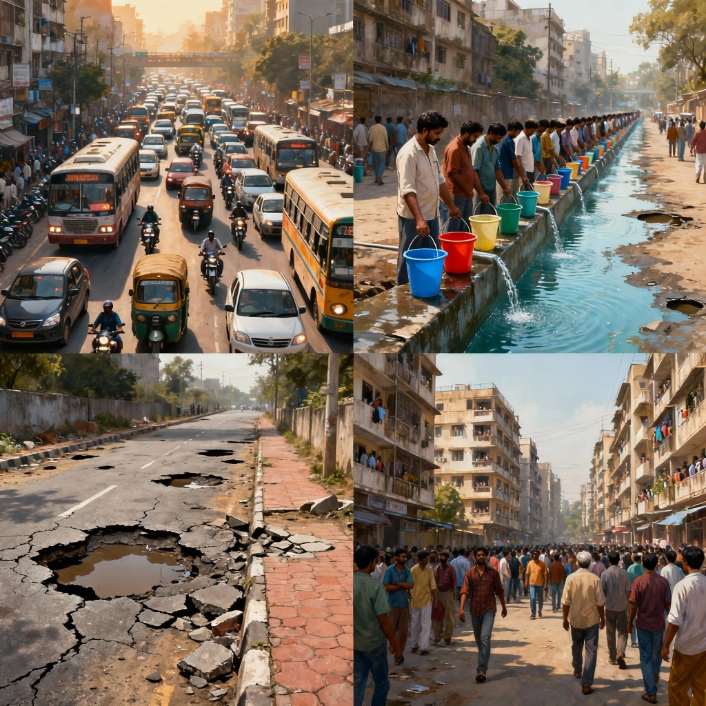 Indian major cities face infrastructure challenges that hinder overall urban living and economic growth.