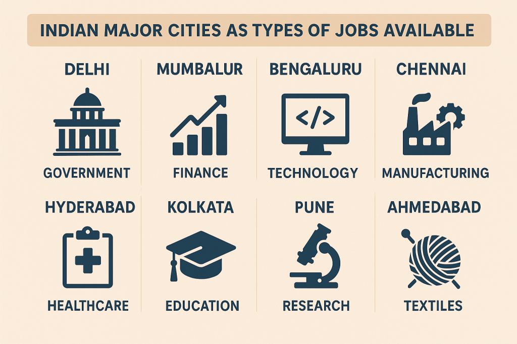 Here’s a clear and simple summary of the types of jobs available in major Indian cities: