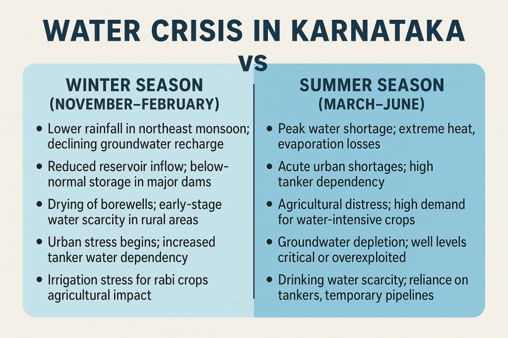 Here is a clear, concise summary of Karnataka’s water crisis during winter and summer: