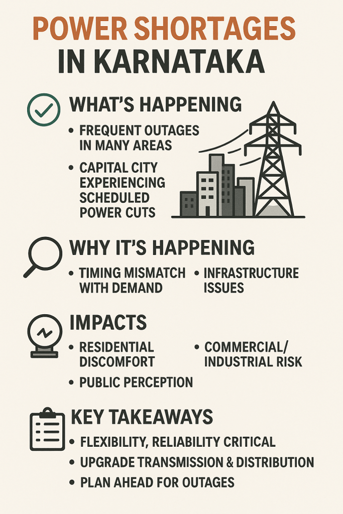 Here’s a summary of the power-shortage situation in Karnataka (as of late 2025) — the overview, causes, impacts and key takeaways.