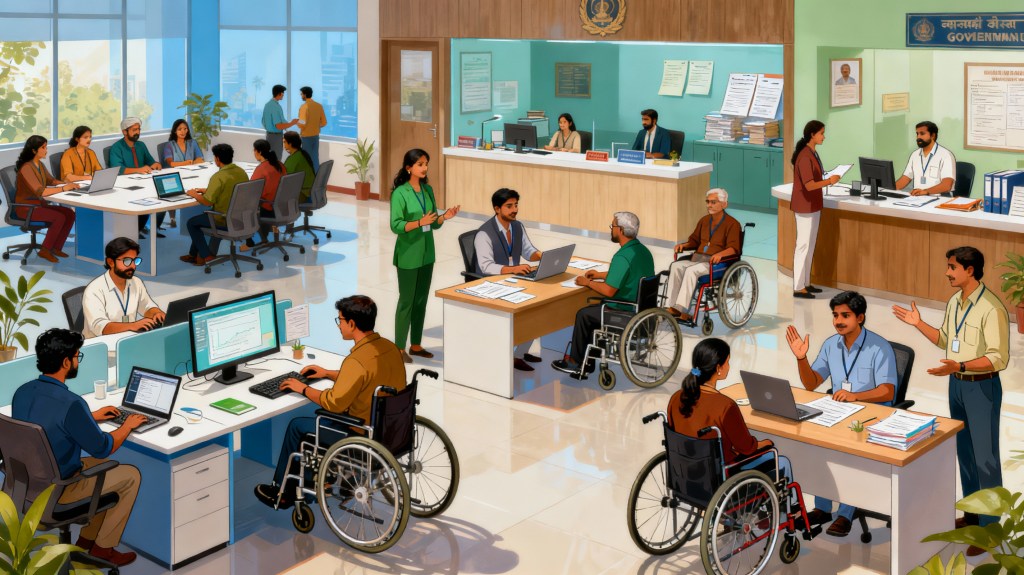 Employment of persons with disabilities (PwDs) in India remains low overall, with Worker Population Ratio around 23% nationally (NSS 76th round), far below non-disabled rates, and stark divides between government (4% reservation quota, often underfilled) and private sectors (typically under 1% representation).���
