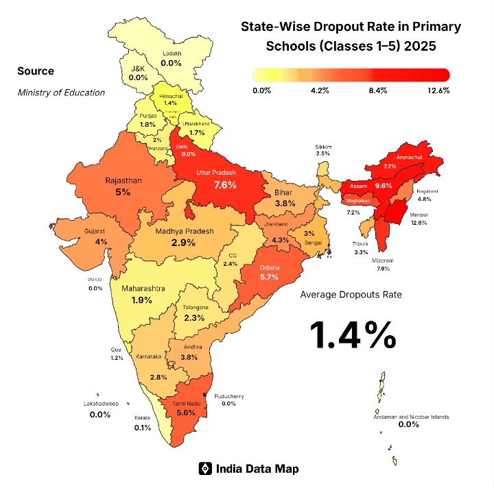 📌 Brief Summary: School Dropout in Indian States (2025)