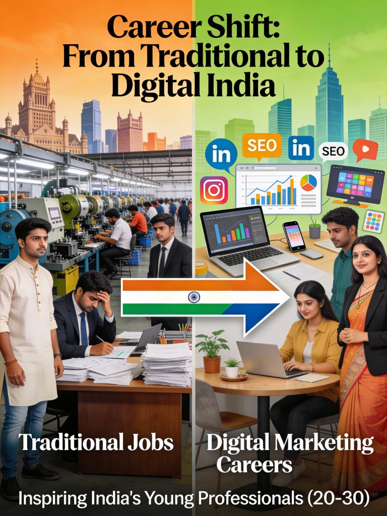 Indian youth are increasingly shifting from traditional jobs to digital marketing roles due to high unemployment rates, skill-based entry without degree barriers, and booming industry growth. This trend reflects a response to limited formal employment opportunities amid a young, tech-savvy population where 70% are under 35.��