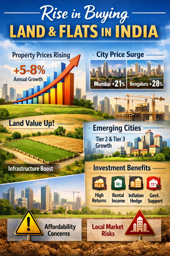 Here’s a comprehensive, up-to-date analysis of the rise (and outlook) of buying land or flats in India — suitable if you’re considering this as an investment or a home purchase: �
