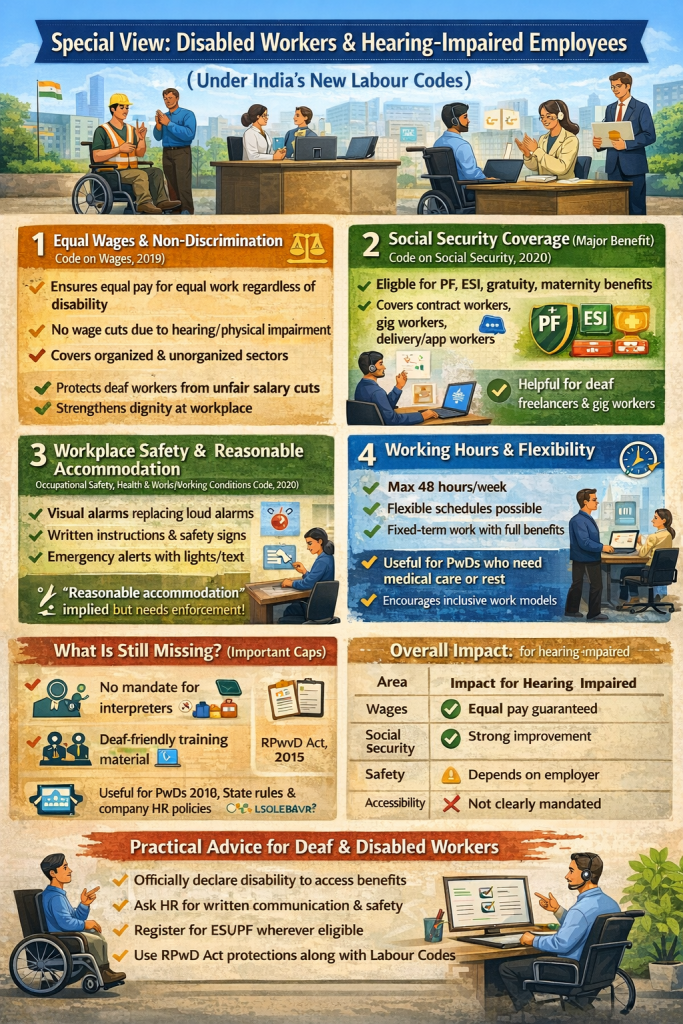 India’s New Labour Codes bring several important protections and opportunities for Persons with Disabilities (PwDs), including hearing-impaired employees, though effective impact depends on implementation.