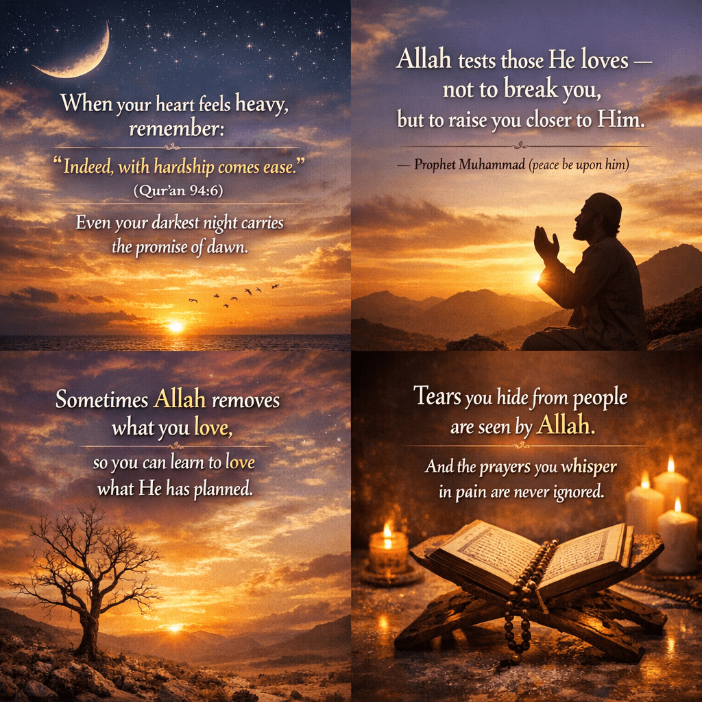 Here are some emotional life quotes with an Islamic message, grounded in themes from the Qur’an and Hadith: