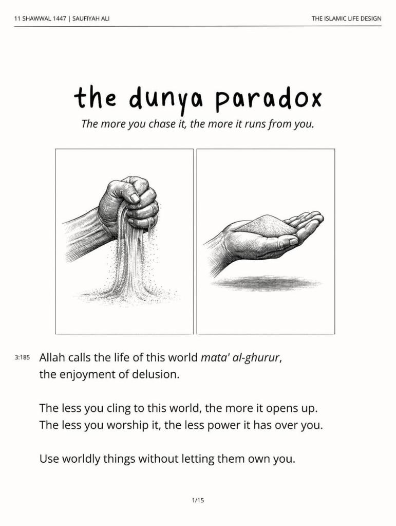 This is the paradox: chasing dunya blindly makes it harder to attain peace.